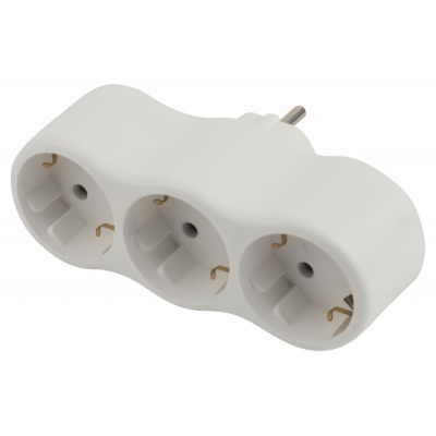 Разветвитель на 3 розетки с заземлением 16А белый ЭРА SPx-3e-W
