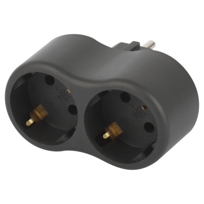 Разветвитель на 2 розетки с заземлением 16А черный ЭРА SPx-2e-B