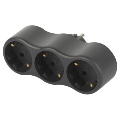 Разветвитель на 3 розетки с заземлением 16А черный ЭРА SPx-3e-B
