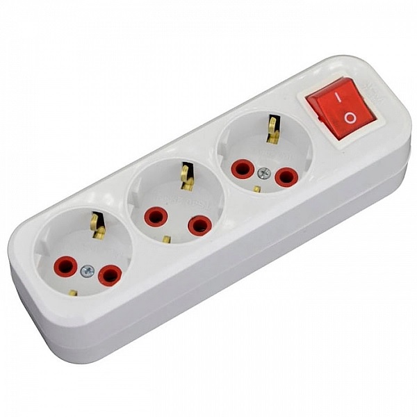 Разветвитель на 3 розетки с заземлением и выключателем, белый, AY-KA 77 133 00