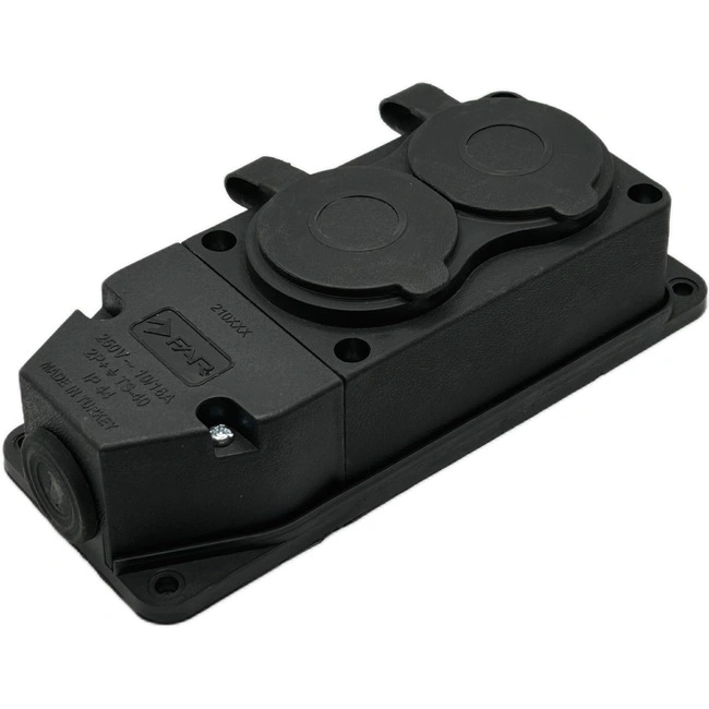 Колодка с заземлением 2 гнезда черная FAR F160 из каучука предназначена для подведения электричества в труднодоступные места и/или подключения к одной розетке нескольких устройств одновременно.
