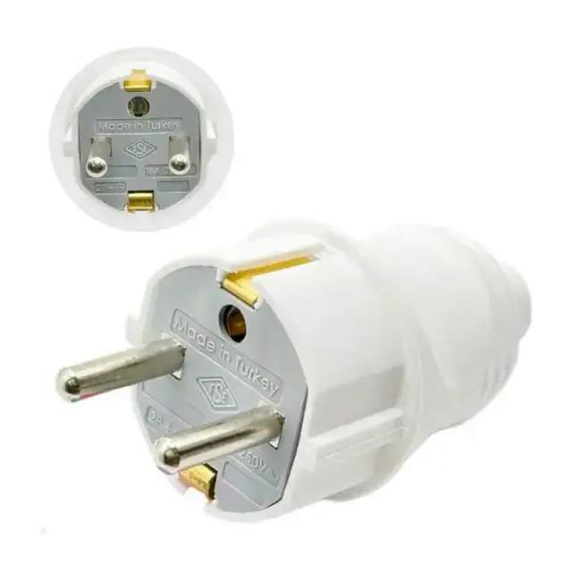 Вилка с заземлением белая FAR F999