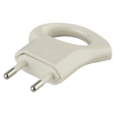Вилка без заземления 6A, с кольцом непрямой ввод, белая, ЭРА V1