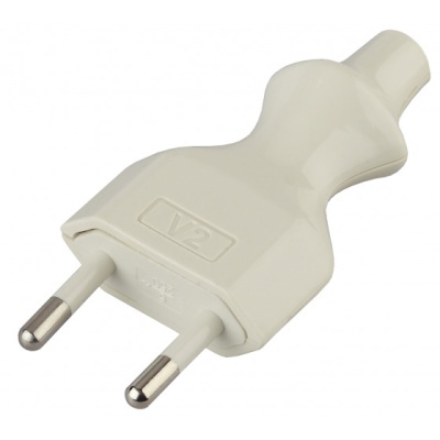 Вилка без заземления 6A, прямой ввод, белая, ЭРА V2