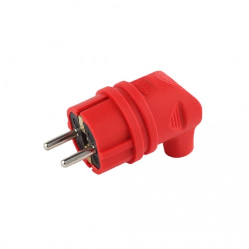 Вилка c заземлением угловая красная, каучуковая, 2P+PE, 1х16А, 220-240В, IP44, AY-KA