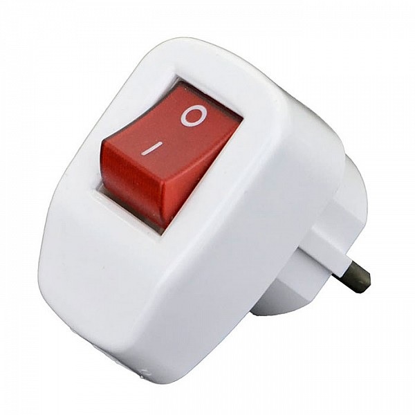 Вилка c заземлением угловая с выключателем, белая, 16А, IP20, AY-KA 77 148 00