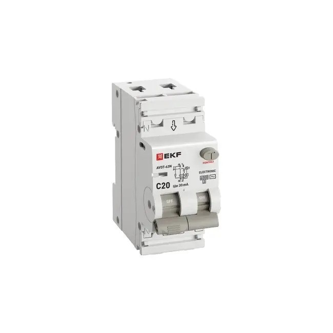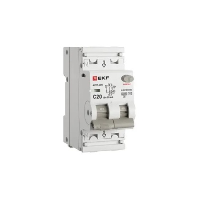 Дифференциальный автомат PROXIMA АВДТ-63N 30мА 1P+N тип AС EKF D63N26E20C30 предназначен для защиты человека от поражения электрическим током при повреждении изоляции электроустановок, для предотвращения пожаров вследствие протекания токов утечки на землю и для защиты от перегрузки и короткого замыкания. Рекомендуются для защиты групповых линий, питающих розетки наружной установки, розеток и освещения подвалов и гаражей.