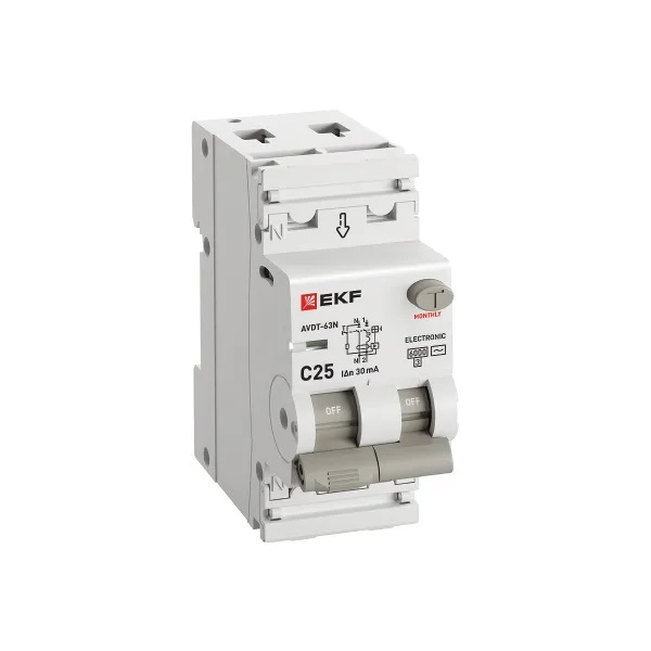 Дифференциальный автомат АВДТ-63N 1P+N 25А EKF
