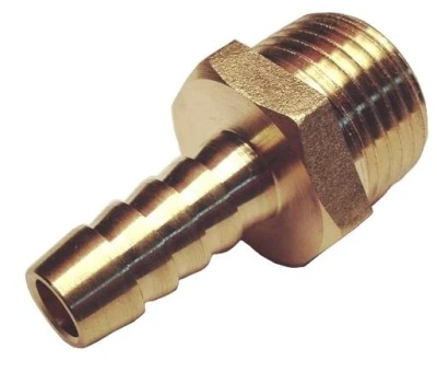 Переходник с внешней резьбы 1/2" на штуцер 10мм. Цельнометаллическая деталь. С одной стороны - штуцер "елочка" диаметром 10 мм (для соединения шланга 9 - 12мм), с другой стороны - гайка с внешней правой резьбой 1/2 дюйма.