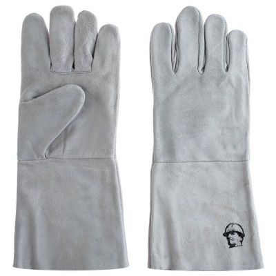 Краги без подкладки 35 см серые IWELD из высококачественного спилка (толщина 1-1,1мм), пятипалые.