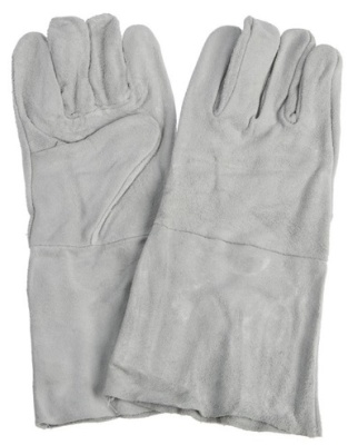 - Перчатки из качественного спилка серого цвета, спилкоавая крага.