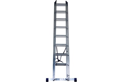 Лестница алюминиевая трехсекционная 3х9, H3 5309, Алюмет - это многофункциональное приспособление для разных работ. Может использоваться в приставном варианте, как двухсекционная лестница, а так же в качестве стремянки и в виде раздвижной, телескопической конструкции. Комплектуется страховочными ремешками, что повышает безопасность работ. Двухкомпонентные наконечники, которыми оснащены опоры, защищают лестницу от скольжения во время работы.