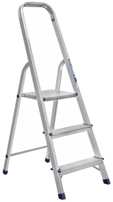 Стремянка 3 ступени АМ703, Алюмет выполнена из матового алюминия и отличается высокой стойкостью к коррозии. Ступени с рифленой поверхностью не позволят скользить во время работы стоящему на них человеку. Имеет широкое применение при проведении малярных, ремонтных и садовых работ на сравнительно небольшой высоте.