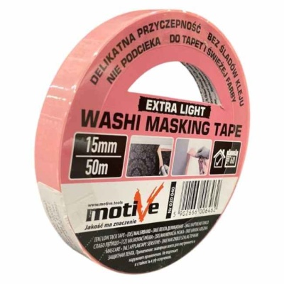 Лента малярная WASHI EXTRA LIGHT из рисовой бумаги 15мм 50м MOTIVE 020040