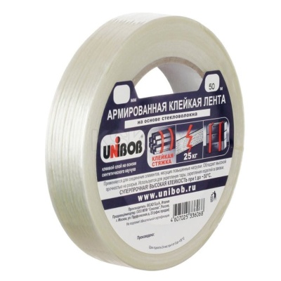 Лента клейкая армированная стекловолокном 19мм х 50м, UNIBOB 42068