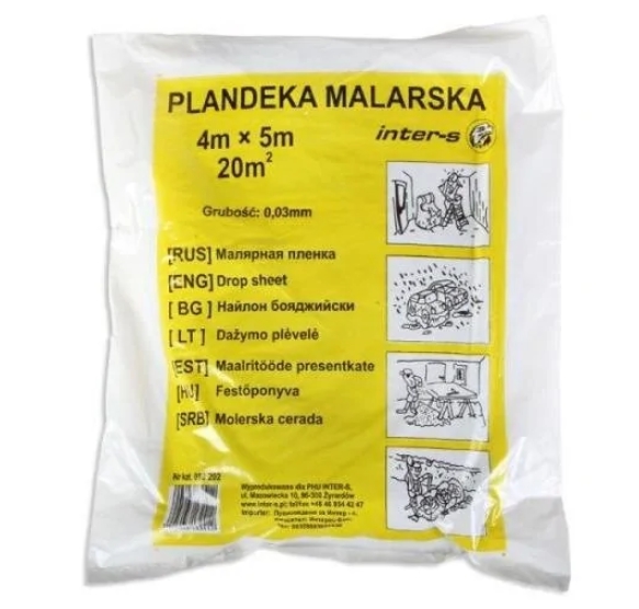 Плёнка защитная 20мкм 4мx5м прочная (010201) INTERS, Плёнка защитная 60мкм 4мx5м 1 сорт (010206) INTERS, Плёнка защитная 40мкм суперпрочная 4мx5м (010203) INTERS, Плёнка защитная 60мкм суперпрочная 4мx5м (010204) INTERS |