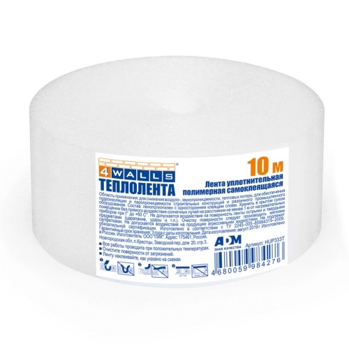 Теплолента для окон 50ммх10м пенополиэтилен, HUP333T 4WALLS или термоуплотнитель самоклеящийся изготовлен из пенополиэтилена с односторонним клеящим слоем. Все работы проводите при положительной температуре. Очистите поверхности от загрязнений, воды, жирных пятен. Уплотнитель наклеивайте без натяжки, слегка прижимая к поверхности.