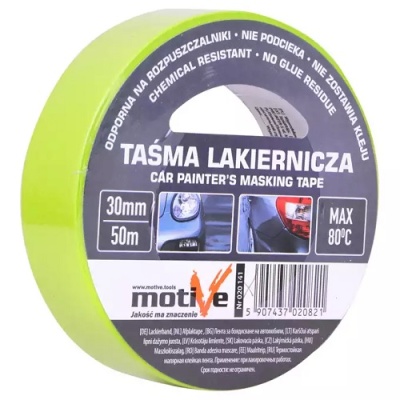 Лента малярная термостойкая 30мм 50м 020141 MOTIVE для лакокрасочных и малярных работах при температуре до 80 ° С.