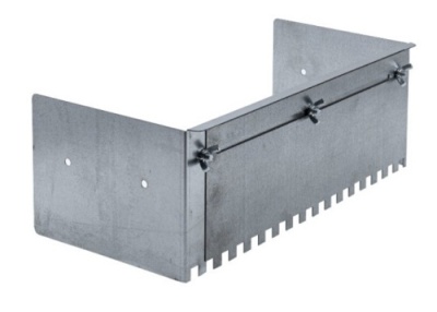 Гребенка предназначена для укладки плитки и керамогранита на пол. Оцинкованная сталь 0.8 мм. Регулирование размера с помощью переставной планки и барашковых винтов. Размеры: 0.4x0.21x0.13 мм.