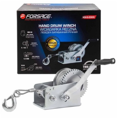 Лебедка ручная барабанная (стальной трос) 900кг, Forsage F-KB-S-2000