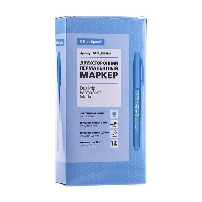 Маркер перманентный двухсторонний синий 0.8/2.2 мм OfficeSpace DPM_1576BU предназначен для письма на большинстве поверхностей: бумаге, коже, пластмассе, металле, резине, ткани.