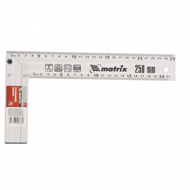 Угольник алюминиевый 450мм 32475 MATRIX предназначен для разметки и проверки прямых углов при обработке и сборке изделий. Имеет анодированную поверхность. Алюминиевый измерительный профиль имеет желоб, который придает особую прочность конструкции. Двухсторонняя разметка с обеих сторон профиля. Информативные пиктограммы. Отверстие для подвеса.