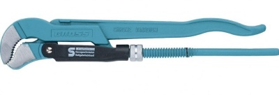 Ключ трубный, тип S, №0, 0,5", 10-35/235 мм GROSS усиленной конструкции, применяется при повышенных нагрузках. Предназначен для захватывания и вращения труб и соединительных частей трубопроводов. Изготовлен из высококачественной хромованадиевой стали. Имеет порошковое антикоррозийное покрытие. Губки дополнительно закалены токами высокой частоты до твердости 57–60 HRС. Прогрессивная форма зуба с наклоном против направления вращения обеспечивает самоблокируемый захват деталей. Верхняя ручка имеет выштампованный Т-образный профиль.