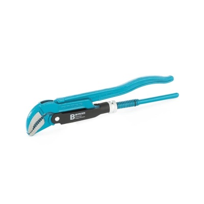 Ключ трубный, тип B, №0, 10-35/235 мм GROSS усиленной конструкции, применяется при повышенных нагрузках. Предназначен для захватывания и вращения труб и соединительных частей трубопроводов. Изготовлен из высококачественной хромованадиевой стали. Имеет порошковое антикоррозийное покрытие. Губки дополнительно закалены токами высокой частоты до твердости 57–60 HRС. Прогрессивная форма зуба с наклоном против направления вращения обеспечивает самоблокируемый захват деталей. Верхняя ручка имеет выштампованный Т-образный профиль.