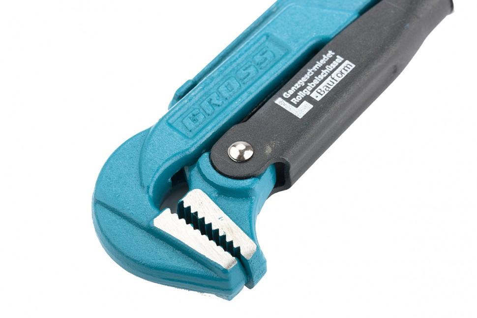 Ключ трубный, тип L, №0, 3/4" 10-35/280 мм GROSS усиленной конструкции, применяется при повышенных нагрузках. Предназначен для захватывания и вращения труб и соединительных частей трубопроводов. Изготовлен из высококачественной хромованадиевой стали. Имеет порошковое антикоррозийное покрытие. Губки дополнительно закалены токами высокой частоты до твердости 57–60 HRС. Прогрессивная форма зуба с наклоном против направления вращения обеспечивает самоблокируемый захват деталей. Верхняя ручка имеет выштампованный Т-образный профиль.