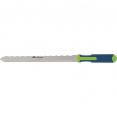 Нож для резки теплоизоляционных панелей (2-стороннее лезвие), 420 мм, лезвие 280 мм, Сибртех оснащен острозаточенным полотном из нержавеющей стали и обрезиненной рукояткой, что гарантирует надежный захват.