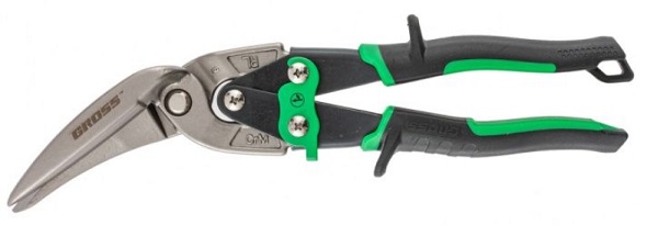 Ножницы по металлу торговой марки GROSS предназначены для проходного прямого и правого реза листового металла толщиной до 1,2 мм и нержавеющей стали толщиной до 0,7 мм. Рабочие части ножниц изготовлены из высоколегированной стали (CrMo), содержание молибдена и ванадия в ее составе придает необходимую жесткость и высокую твердость. Режущие губки проходят процесс индукционной закалки и имеют твердость 60–62 HRС. Ножницы общей длиной 270 мм оснащены эргономичными двухкомпонентными рукоятками, оригинальная форма которых минимизирует риск травм и обеспечивает удобство при длительных работах.