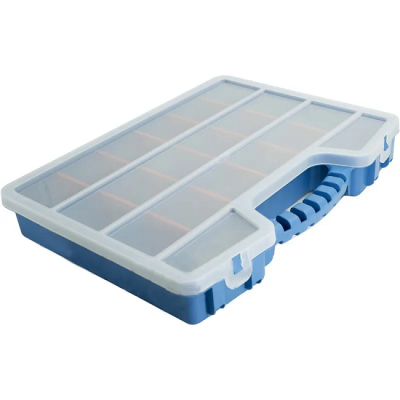 Органайзер (со съемными перегородками) 390х60мм предназначен для мелкого крепежа, инструмента и оснастки. Подходит для хранения рыболовных снастей. Изготовлен из прочного пластика, отличается долговечностью, высокой степенью износа, устойчив к механическим повреждениям, морозу и влаге. Органайзер прочно закрывается и предотвращает выпадение предметов.
