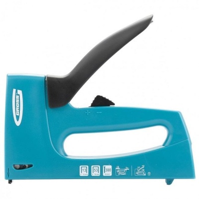 Степлер ручной 6-16 мм, тип 13, 53, 300, GROSS Предназначен для быстрого крепления листового материала (оргалита, фанеры, ДСП, ДВП, пленки, утеплителя) к деревянному основанию. Корпус степлера изготовлен из пластика методом литья. Быстрая загрузка скоб в скобоприемник. Степлер оснащен рукояткой эргономичной формы. Двухпозиционная регулировка силы удара.
