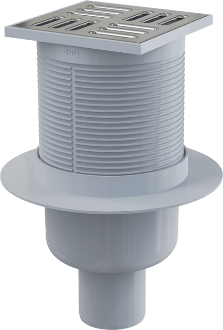 Сливной трап 105х105/50 APV32 Alcaplast для внутренних помещений, где не ожидается регулярное использование сливного трапа (прачечные, котельные, подвалы). Для водоотведения на уровне пола.