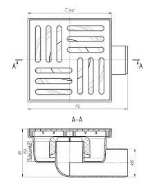 - Модель: точечный горизонтальный нерегулируемый сливной трап с гидрозатвором