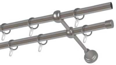 Карниз двухрядный, гладкая труба 16 мм L1,6м, матовый хром без наконечников.