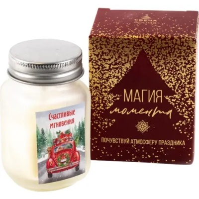 Свеча декоративная "Счастливые мгновения" в стеклянной банке 5x5x7см, 28374906