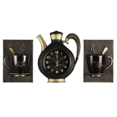 Часы настенные "Рубин" 2622+2-003 состоит из трех частей: часов в форме чайника и двух декоративных чашек.