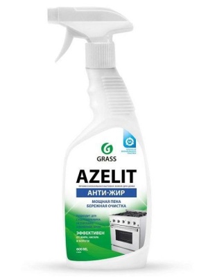 Средство-антижир Azelit GraSS для удаления нагара, жира и копоти, 600 мл его химический состав растворяет жир за 2 минуты, что позволяет убрать застарелые пятна легко. Подходит как средство для плит, очистки посуды, фронтальных и горизонтальных поверхностей кухни, плитки, электрических бытовых приборов.