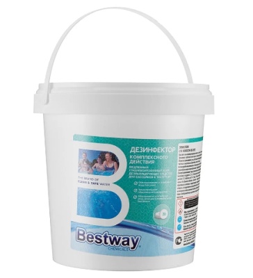 Средство для бассейна дезинфицирующее Bestway DKM0.9TBW 900гр, BESTWAY. Очистка воды в бассейне — сложный и комплексный процесс, требующий внимательного использования специализированной химии в правильных пропорциях, для того чтобы полностью предотвратить развитие различных бактерий, но и не причинить вред здоровью людей. «Дезинфектор комплексного действия Bestway.