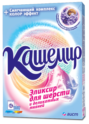 Порошок стиральный Кашемир эликсир для шерсти и деликатных тканей 350 г предназначен для стирки изделий из шерсти, шёлка, искусственных и синтетических тканей в стиральных машинах любого типа и ручной стирки при температуре 25ºС - 40ºС.