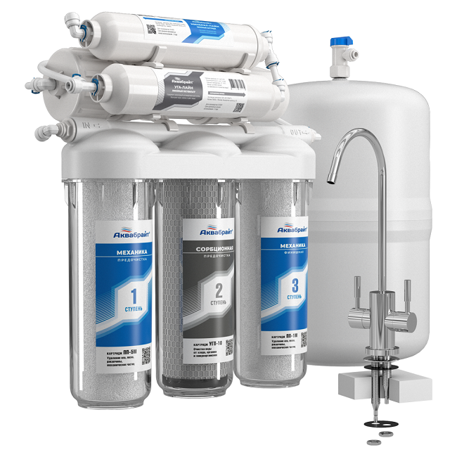 Водоочиститель Аквафор КРИСТАЛЛ Н (исп.2) РФ, Фильтр для воды Гейзер-Стандарт для ж.в., Система очистки питьевой воды с обратным осмосом Аквабрайт АБФ-ОСМО-5, Система очистки воды трехступенчатая FS3 EMI USTM |
