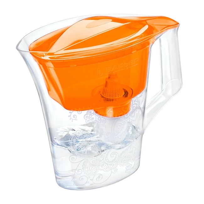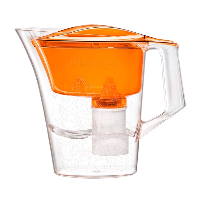 Водоочиститель Кувшин Барьер Танго (оранжевый с узором) - яркий компактный кувшин с элегантным узором. Не занимает много места на кухне, удобно помещается в дверце холодильника.
