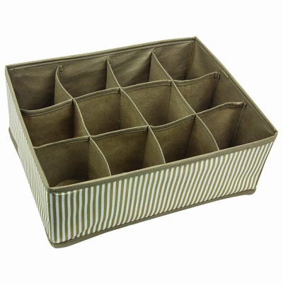 Органайзер для хранения Line, 310x250x120 мм, Econova 411755232 изготовлен из влагостойкого и воздухопроницаемого спанбонда, что позволяет вещам дышать и предотвращает появление неприятных запахов. Органайзер имеет твердый каркас и мягкие стенки. Органайзер позволяет организовать хранение нижнего белья и носков, галстуков, ремней, колготок, детской одежды и других вещей. Благодаря открытым ячейкам, органайзер с отсеками также прекрасно подойдет для хранения проводов, кабелей, зарядных устройств, украшений, бижутерии и аксессуаров. Размер ячейки: 8 x 8 x 2 см.