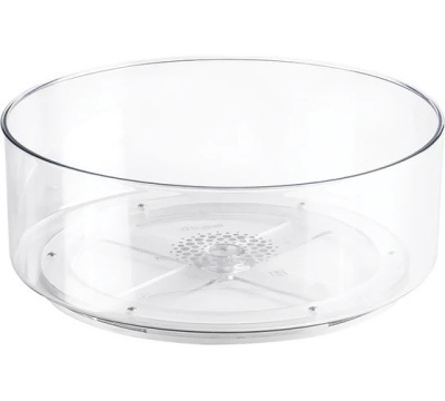 Универсальный вращающийся органайзер обеспечит удобное и компактное хранение небольших банок, бутылок, специй, соусов, принадлежностей для чая/кофе и пр. Вращение на 360 градусов позволяет легко найти и взять нужные предметы, высокий бортик надежно удерживает их на месте. Лаконичный дизайн и удобный размер делают органайзер действительно универсальным решением для организации пространства - на кухонных полках и в холодильнике, в ванной и прихожей, даже на рабочем столе этот аксессуар поможет поддерживать порядок.