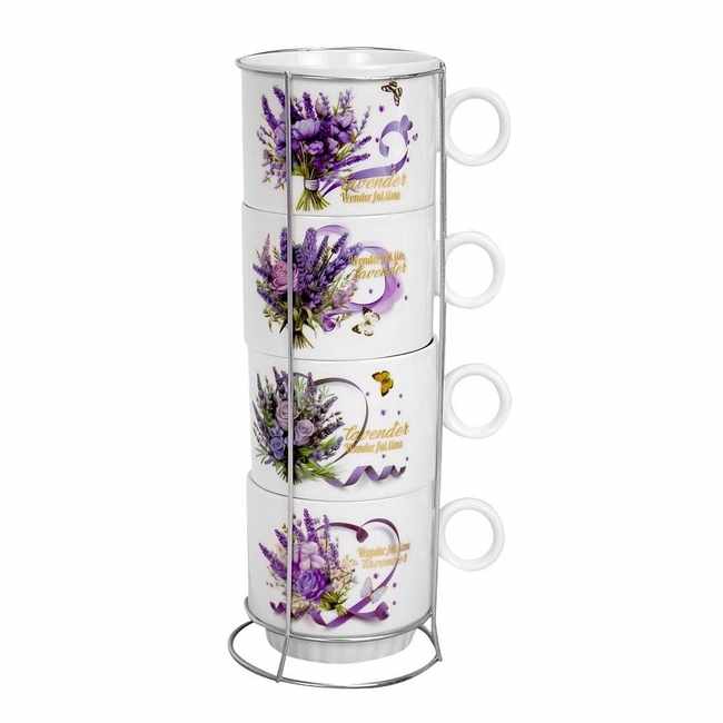 Набор кружек Lavender фарфор 4 шт 260 мл с подставкой Market Union DA2262