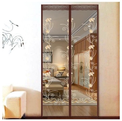 Штора антимоскитная на дверь на магнитах (коричневая, вышивка завитки с цветком) 100x210 см имеет 16 магнитов для плотного смыкания - ее легко раскрыть и она автоматически закроется за вами.