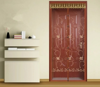 Штора антимоскитная на дверь на магнитах (коричневая вышивка узор) 100x210 см имеет 16 магнитов для плотного смыкания - ее легко раскрыть и она автоматически закроется за вами.