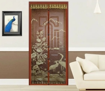 Штора антимоскитная на дверь на магнитах (коричневая, вышивка птицы) 100x210 см имеет 16 магнитов для плотного смыкания - ее легко раскрыть и она автоматически закроется за вами.