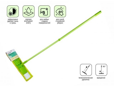 Швабра с практичной ножной педалью. Способна вращаться 360* для удобного использования. Предназначена для сухой и влажной уборки гладких поверхностей (пола, стен, потолков). Идеально подходит для мытья линолеума, паркета, ламината, кафеля. Более гигиенично собирает и удерживает пыль, грязь,жидкость.
